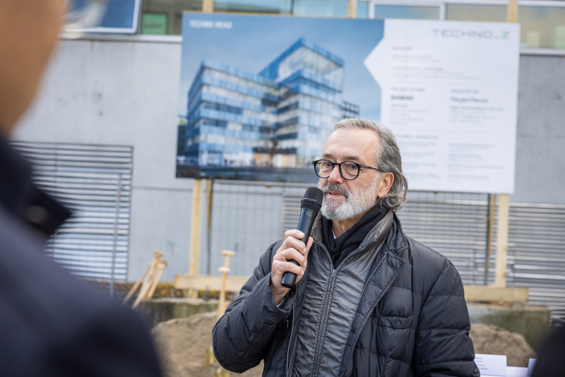 Am Montag, dem 10. November, erfolgte im Techno-Z der feierliche Spatenstich für den neuen Kopfbau „Techno Head“. Das achtgeschossige Gebäude, das in zwei Jahren eröffnet werden soll, überzeugt durch zukunftsweisende Architektur und gilt schon jetzt als Vorzeigeprojekt für nachhaltiges Bauen.